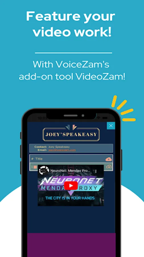 (You can even show off your actual voiceover video work or video demos with our optional add-on tool VideoZam!)