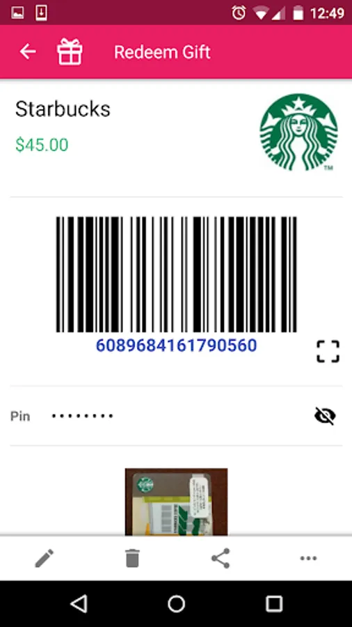 Store your gift cards, loyalty cards and coupons by scanning the barcode or entering the card number.