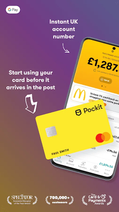 3. Start shopping today — add your Pockit card to Google Pay, check your instant card details and PIN in the app
