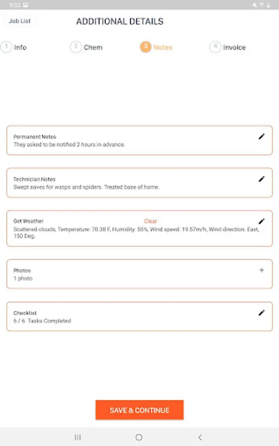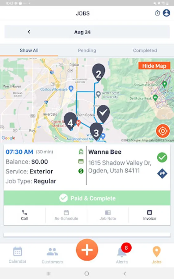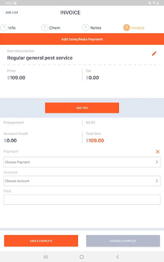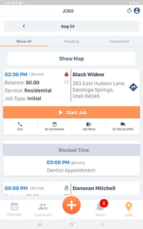This app works in tandem with the web interface for Pocomos Pest Control Software. Technicians are able to run their whole route from the convenience of the app. They can add new customers, enter product usage, capture job and contract signatures, attach job photos, enter job notes, accept payments, reschedule jobs and much more all from an easy-to-use native mobile experience.