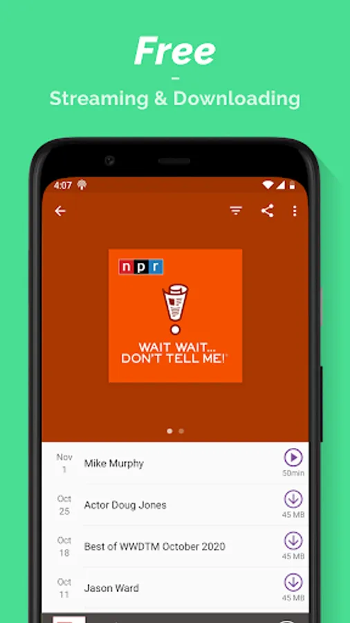 Download podcast mp3 you like in Podcast Player without any additional cost and limitation