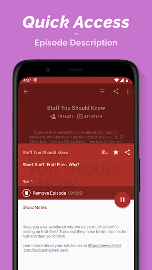 Control your podcast/radio playing from widget, notification center, lock screen, headphone, and Bluetooth
