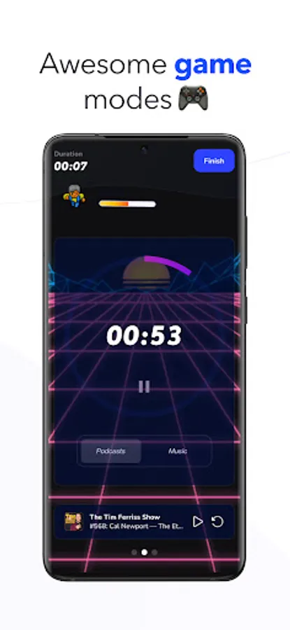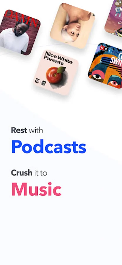 A unique workout experience where you listen to podcasts during the relaxing parts of your workout and seamlessly shifts to music when you're giving it your max.