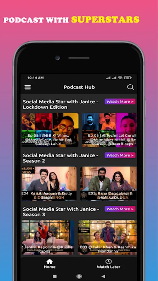 This Podcast Hub app has podcasts of many famous personalities like Gary Vee, BB ki Vines, Kunal Shah of Cred, The Ranveer Show Podcasts, Aman Dhattarwal, Jay Shetty, Neelesh Misra along with many celebrities and filmstars.