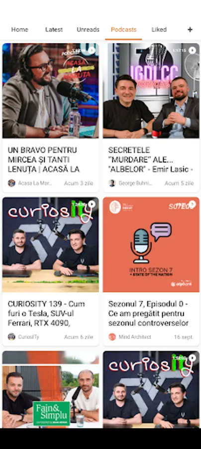 You can see the latest videos posted on the podcast channels of the most famous stars and the most famous influencers from Romania.