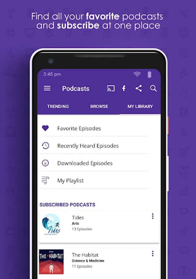 From thousands of free podcasts from various categories, you can play and download any podcast.