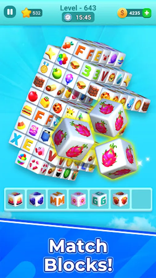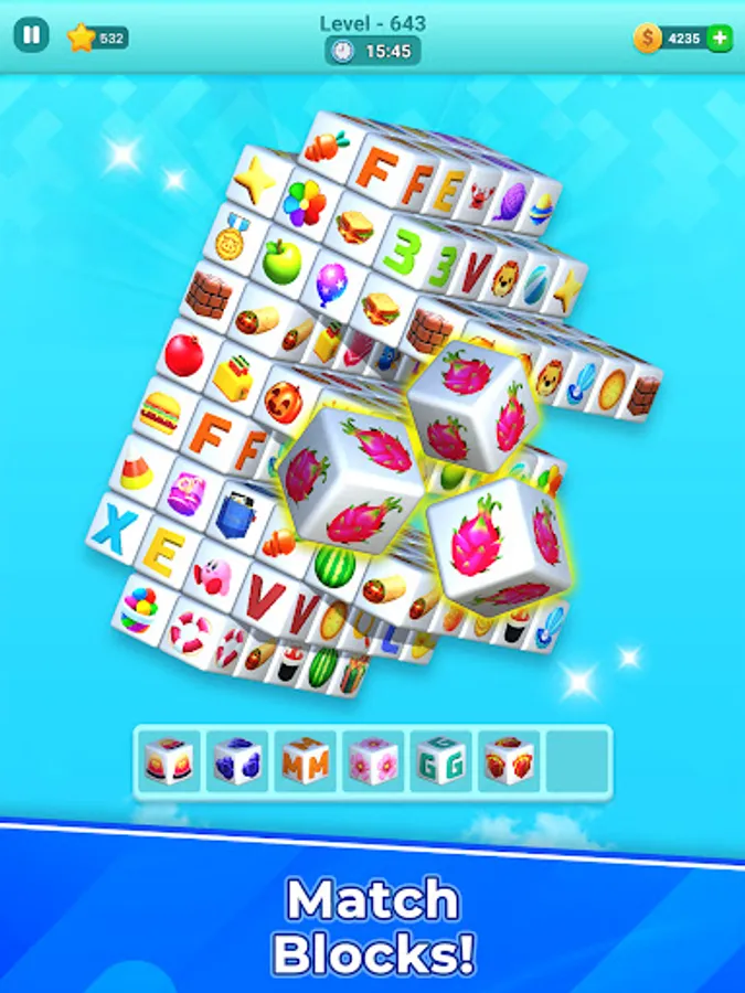 Cube Tile Match 3D is absolutely an addictive strategy games that you must fall in love with once you play it. As a board game, this matching 3d game is simple & entertaining for anybody to enjoy!