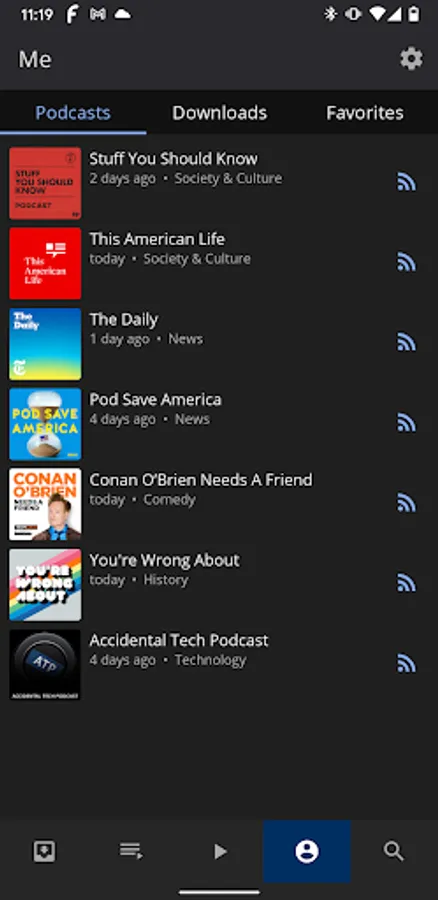 Check your downloads, favorites and subscribe/unsubscribe from podcasts with a single tap