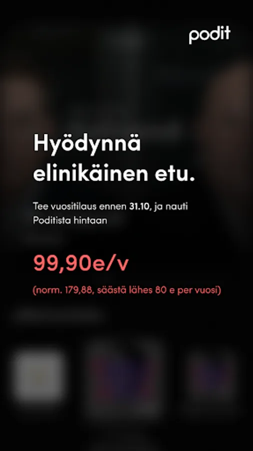 Choose an annual contract and get Podit's top content for the rest of your life at a discounted price!