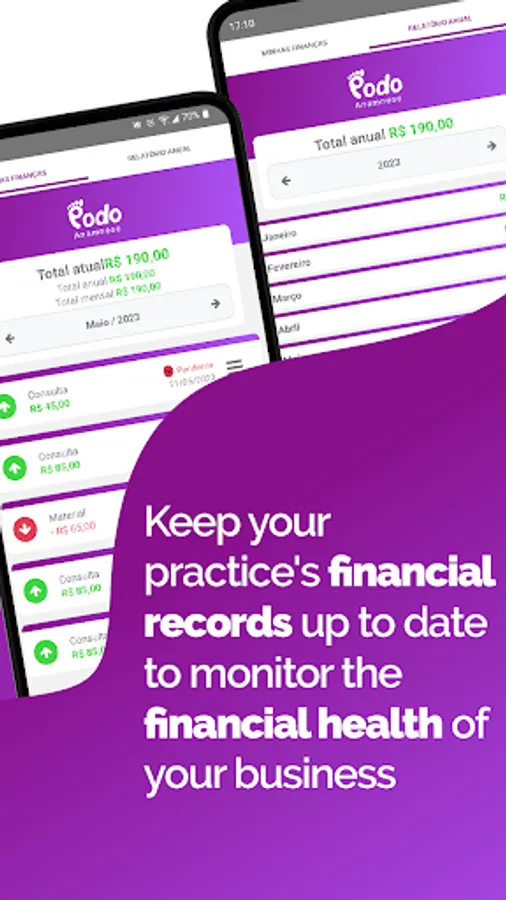Create an account for your practice, keep track of your inventory, suppliers, finances, agenda, patients and anamnesis records to have complete control of your practice, always up to date and easy to consult!