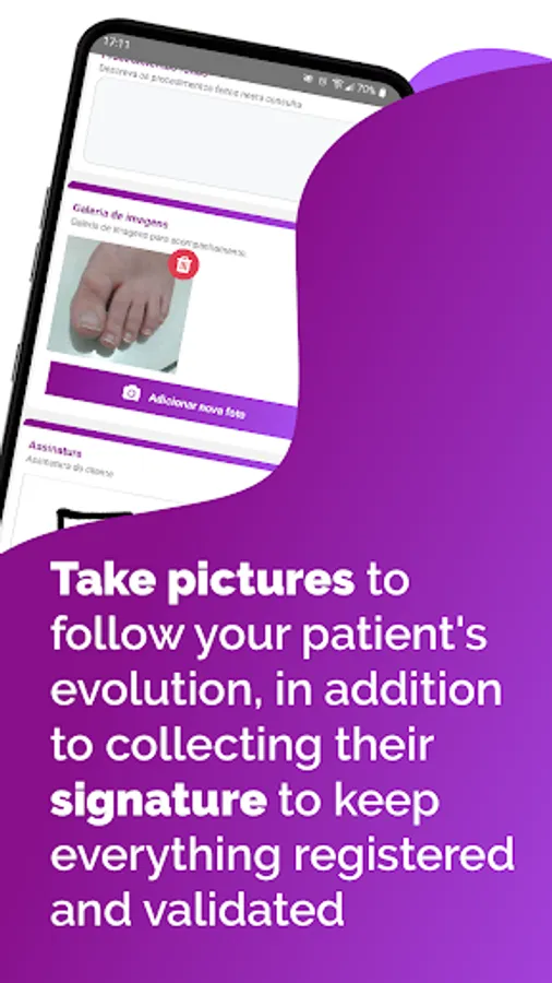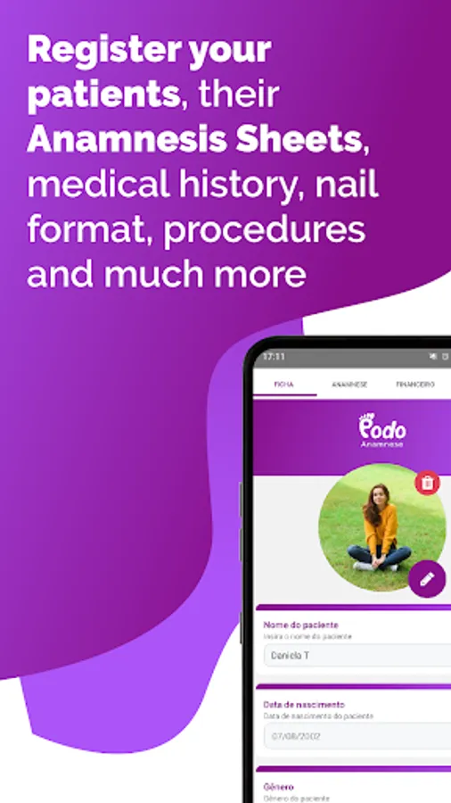 Keep your patient records organized easily and quicly! Make it easier to manage your business and register your patients' anamnesis records, all on your cell phone, without paper, without bureaucracy.