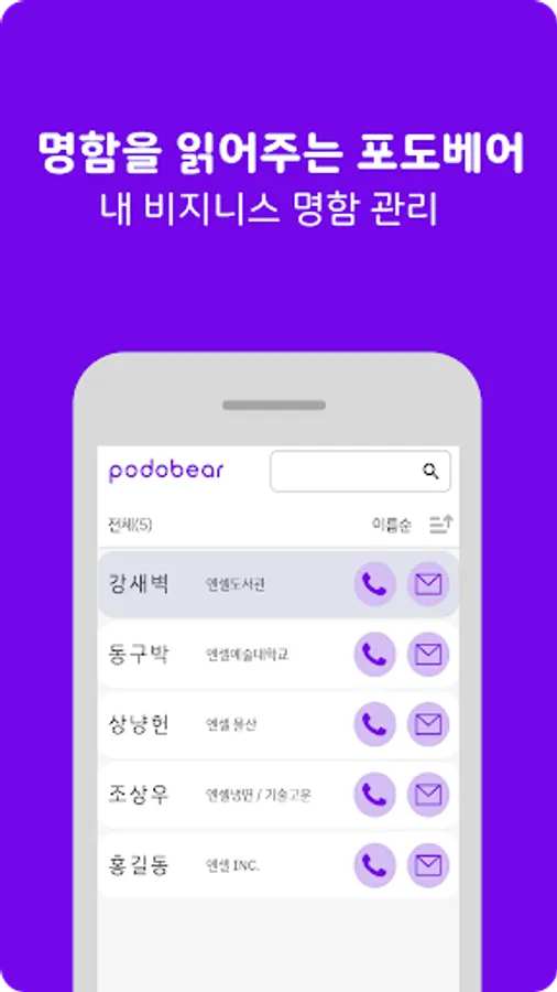 podobear, which reads business cards, is a simple business card application made by selecting only cute characters and necessary functions.