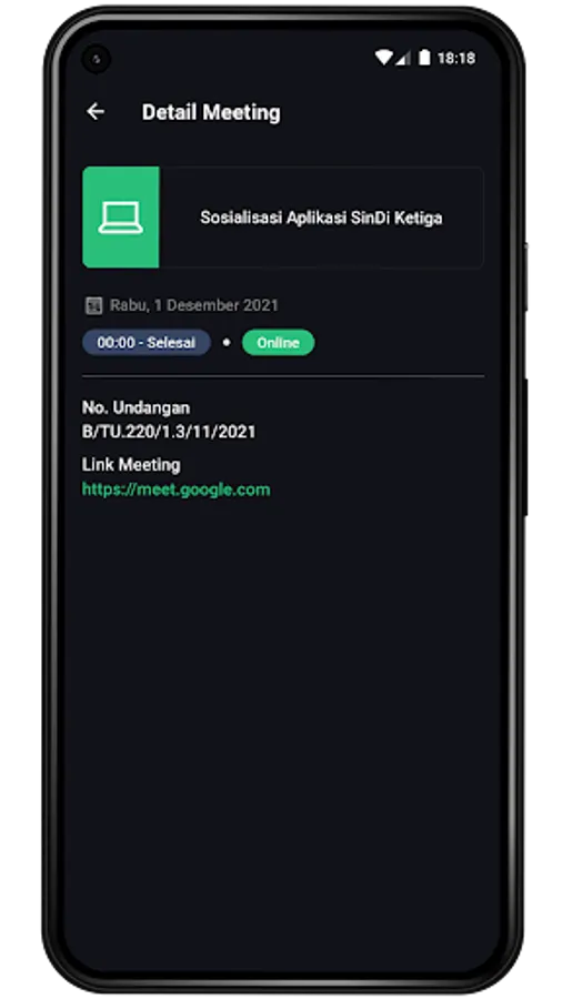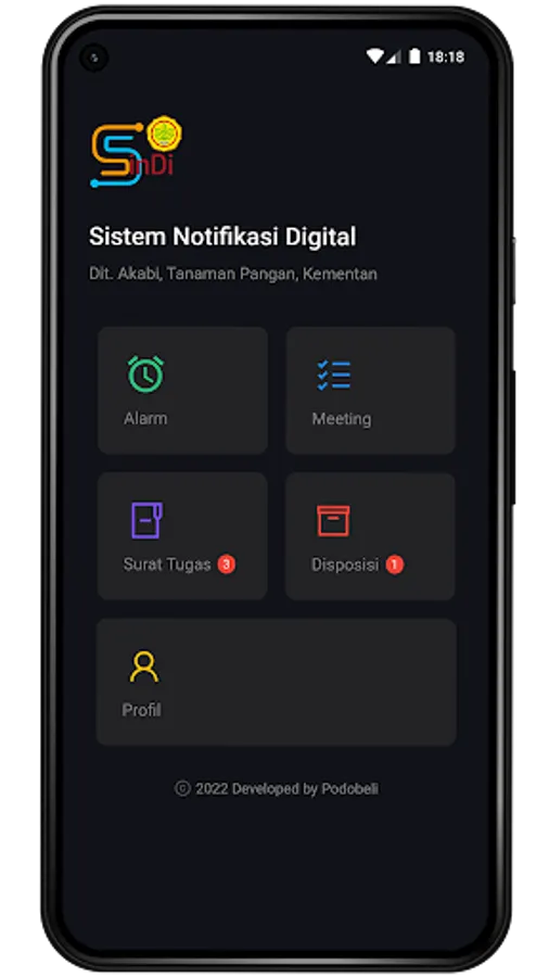The Digital Notification System (SiNDI), is an innovation from the Ministry of Agriculture, Directorate of Various Nuts and Tubers. This application aims to assist users in attendance reminders, meeting schedules, assignment letters and job dispositions.