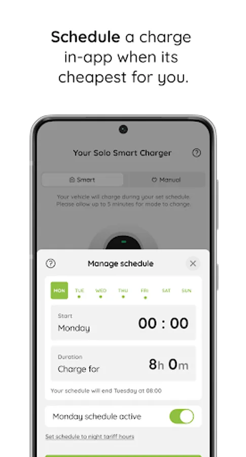 - Remotely schedule charging and create a schedule to charge when its cheapest for you.*