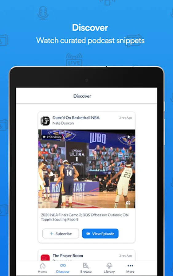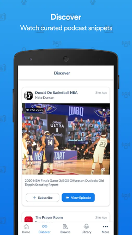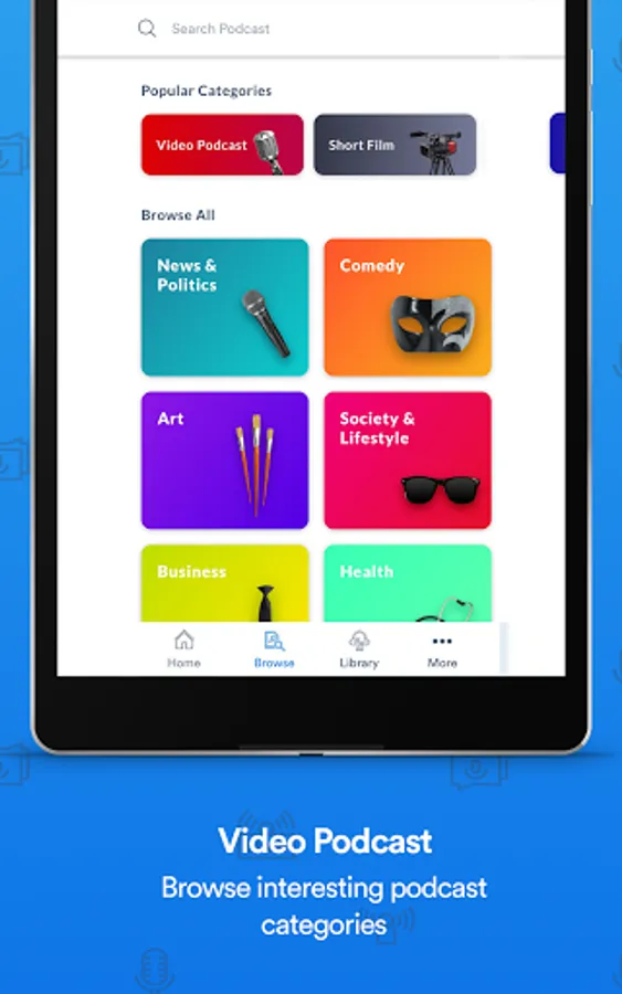 listen to podcasts free from various categories. Discover podcast from different areas and add them to your library to listen and watch anytime. Whether you are into comedy podcast or news podcast or stories podcast or art, health, lifestyle, travel etc. - you can podcast series on almost everything. You will also get recommendations based on your choices and also see the trending podcasts.