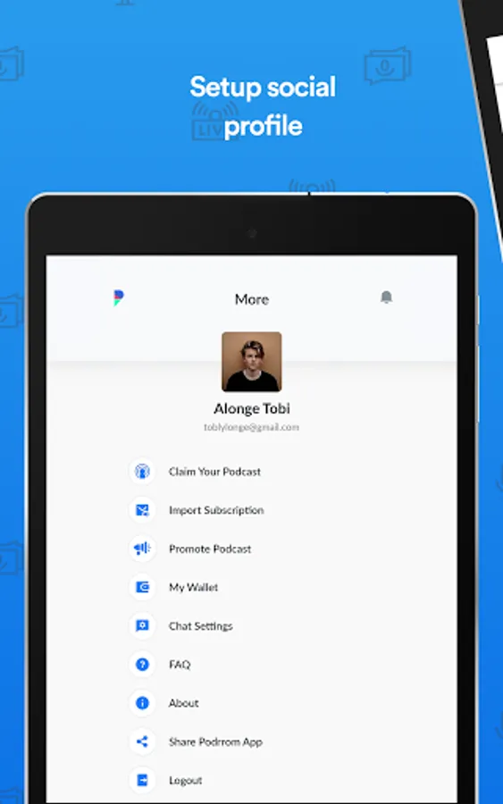 3. Create Podcasters profile and interact with your audience. Manage PodRoom when you open and close a room, engage with listeners and respond to various questions.