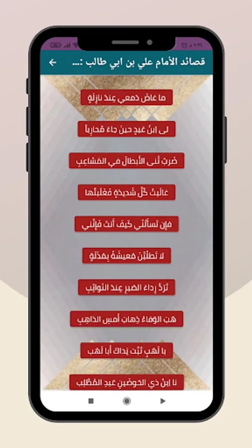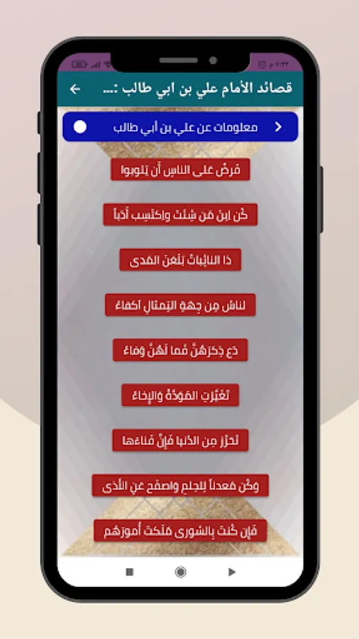 The application of the poems of Imam Ali bin Abi Talib: Diwan Ali bin Abi Talib allows you to browse the poems of Ali bin Abi Talib, share verses to friends and copy the poems.