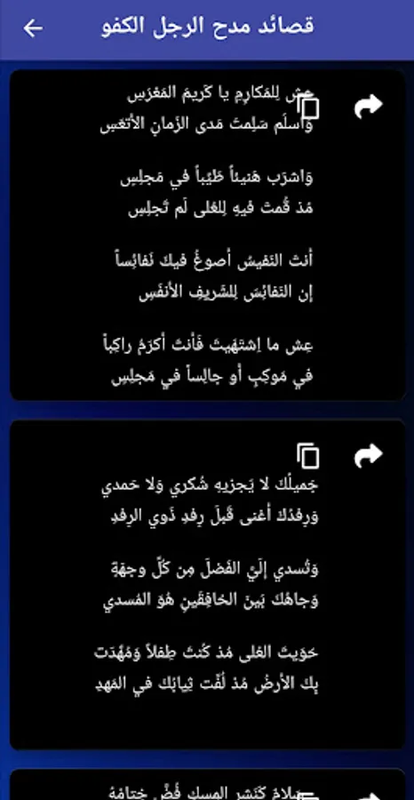 The application is characterized by an easy-to-use interface and an attractive design, where users can easily view the poems, a poem of praise in a man who is like his book