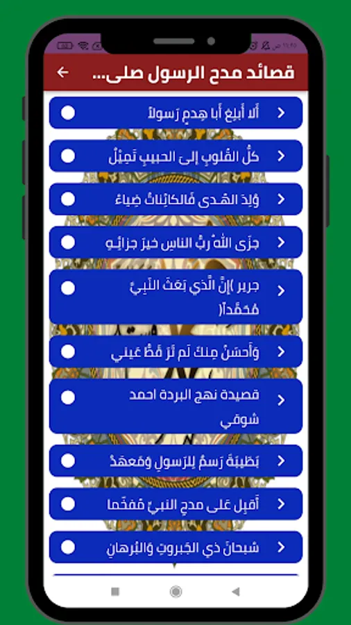 The application of poems praising the Messenger contains impressive written poems of praise for the Prophet Muhammad, peace and blessings be upon him, that make us long to see the face of the Noble Prophet Muhammad, may God bless him and grant him peace, the Prophet sent to the entire world, the seal of messengers, upon him be the best prayer and complete the prayer. O Messenger of God, may God redeem me.