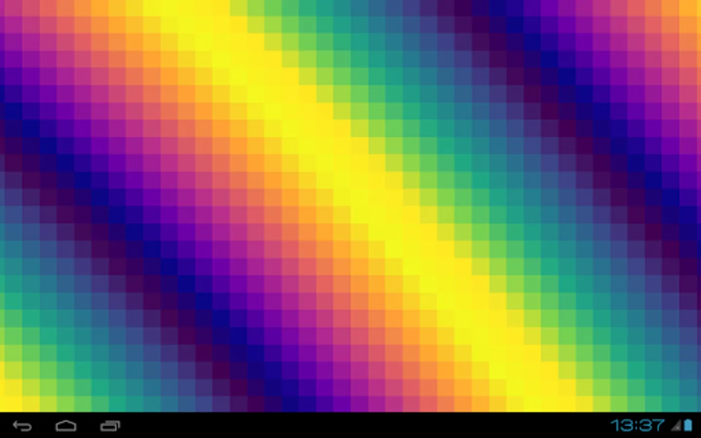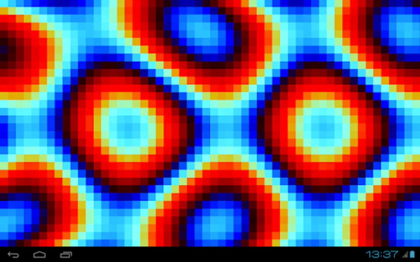 Turn your screen into a display of geometric splendour and sexy pixels with Plasma Plus Live Wallpaper! Featuring 13 great animated wallpapers and 37 color palettes -- all of this for just a symbolic fee!