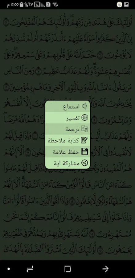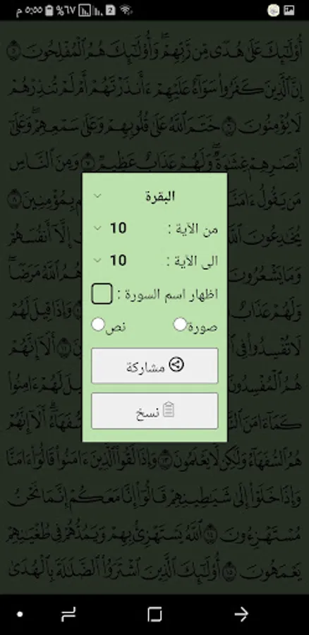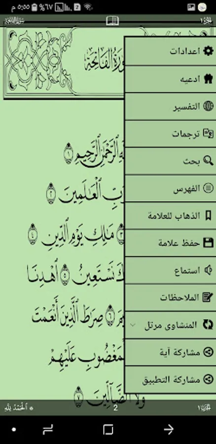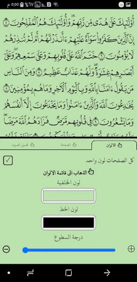 القران الكريم مصحف الشمرلي كاملاً دون اتصال بالانترنت وهو مطابق تماماً للمصحف الورقي ولا توجد إعلانات أثناء القراءة مميزات مصحف الشمرلي البحث وفهرس السور وفهرس الأجزاء والأحزاب وإمكانية الانتقال لأي صفحة ويحافظ تطبيق مصحف الشمرلي على وضع الشاشة مضاءة لمن أراد الاستمرار بالقراءة لفترة طويلة ويمكنك فى تطبيق مصحف الشمرلي التحكم بالون الخلفية ولون الخط وفي حال إغلاق تطبيق مصحف الشمرلي عند صفحة معينة و فتحه مرة أخرى سيذهب تلقائياً الى الصفحة التي تم الإغلاق عندها بالضافة إلى إمكانية القراءة فى مصحف الشمرلي بالوضعين الأفقي والشاقولي وبخط واضح وصورة مصحف الشمرلي لا تبّهت إطلاقاً مصحف الشمرلي الإصدار الرابع مصحف الشمرلي بالتفسير مصحف الشمرلي ملون المصحف الشريف ( طبعة الشمرلي ) بجودة عالية جداً مصحف الشمرلى الطبعة المصرية بخط واضح وخلفية مريحة للعين وصفحات لا تبهت.