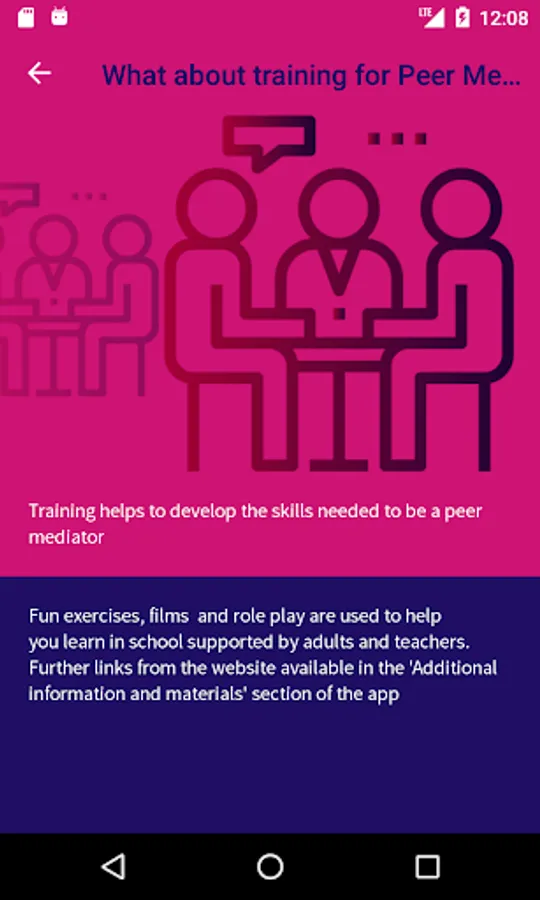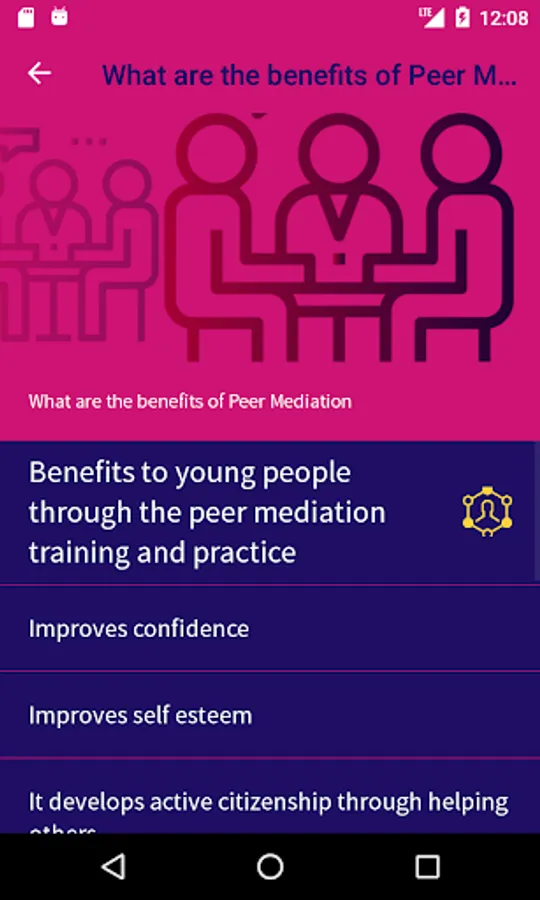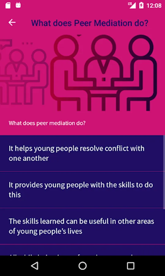 The app supports peer mediation with a clear structure and information for young people and adults following training.