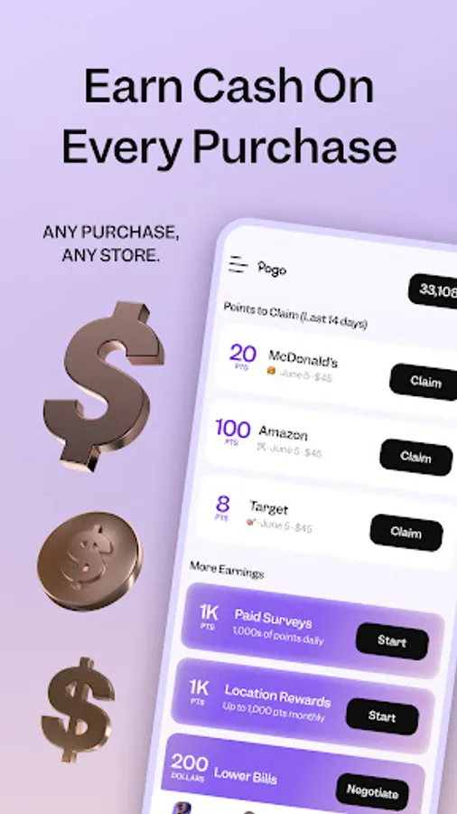 Turn all your rewards and savings into real cash. With Pogo, you can cash out via Venmo or PayPal fast and easy. No more high cash out minimums like other apps. Start saving $$$ with Pogo today!