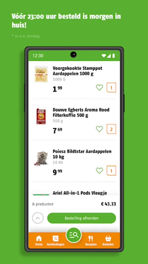 Order groceries online? With the Poiesz supermarket app, online shopping becomes even easier. Easily create your shopping list, order your groceries in our app and don't miss a single offer. Your groceries are delivered at home or are ready for you in your Poiesz at the time that suits you best.