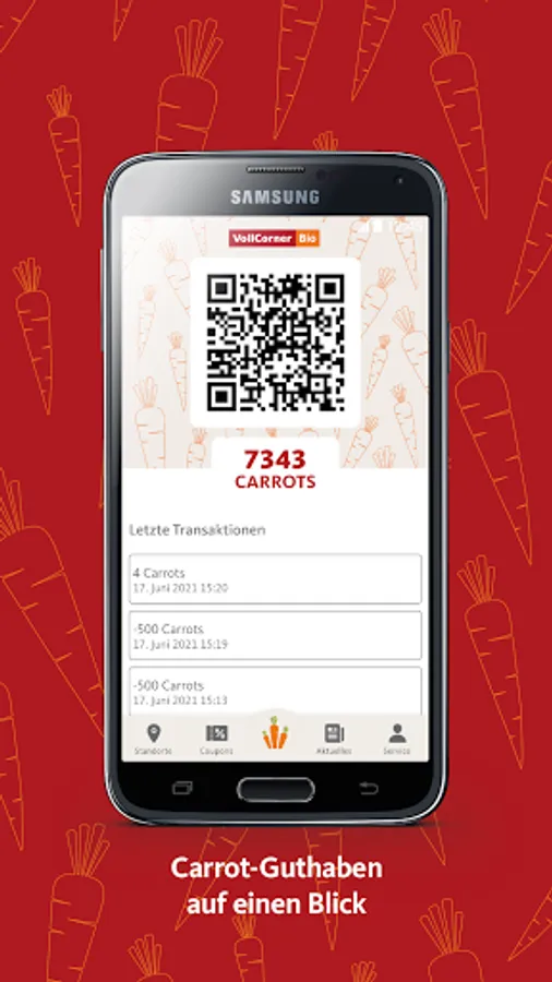 Collect carrots, reap discounts and organic premiums! With the VollCorner CarrotCard app, valid in all VollCorner organic markets and the organic wine trade Vino in Munich.