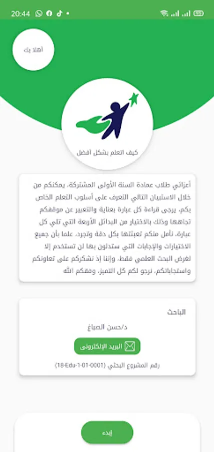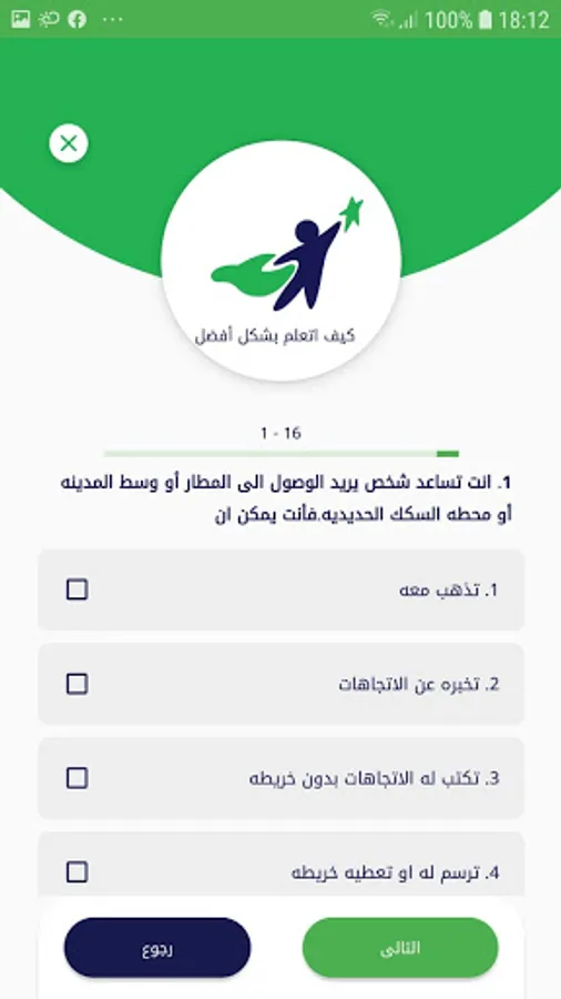 Dear students of the Joint First Year Deanship, through the following questionnaire you can get to know your own learning style. Please read each phrase carefully and express your position towards it by choosing from the four alternatives that follow each statement. That you will be guided by will not be used except for the purpose of scientific research only, and we thank you for your cooperation and your responses, we wish you all the distinction, may God grant you success