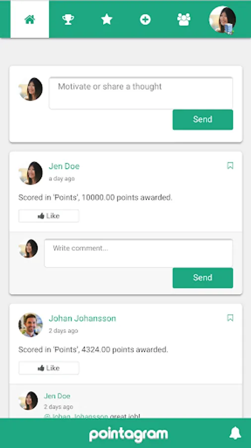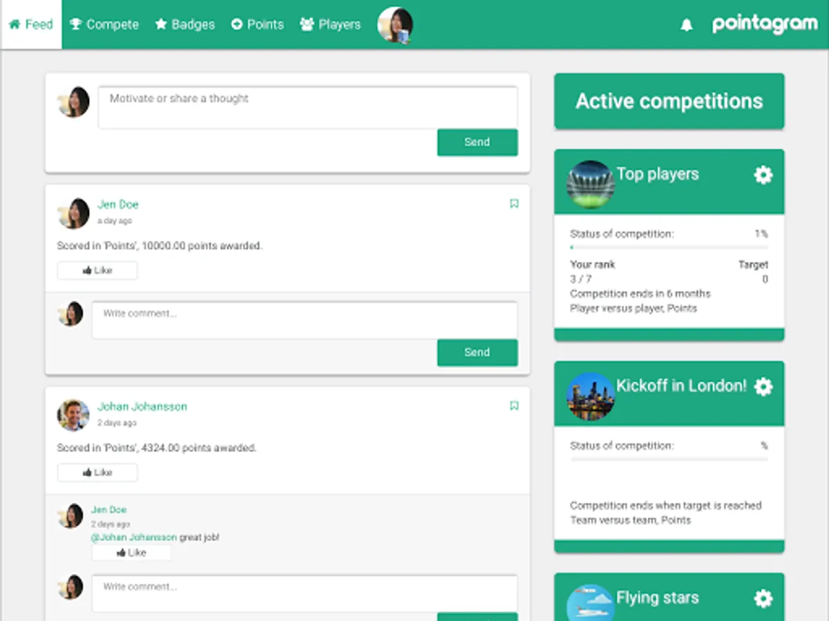 Engage through social elements such as feeds, notifications, comments and work together towards common goals!