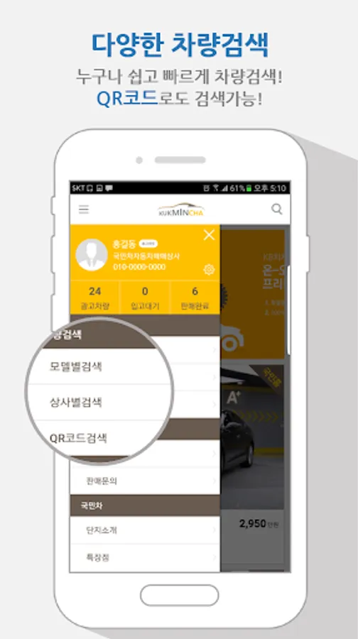 - 중고차 검색 : 제조사, 등급, 옵션 등 상세한 차량검색 / 상사별검색 / QR코드 검색