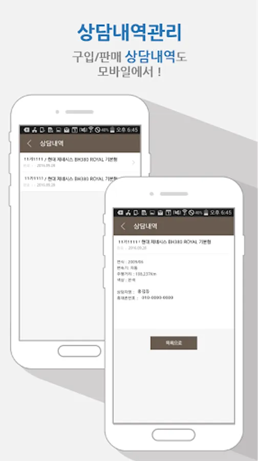 - 구입/판매 : 관심차량 구매상담과 내차 판매상담 등록