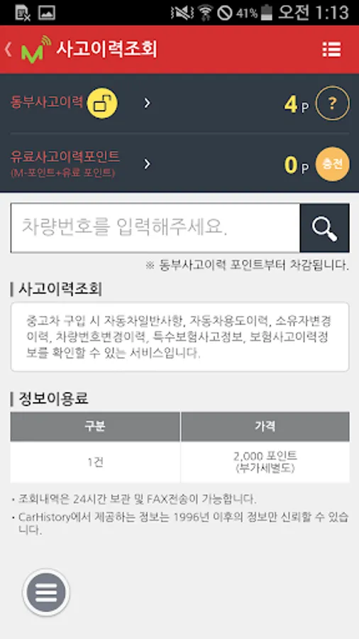- Incident history inquiry: I want to confirm whether the accident of the vehicle (paid service)