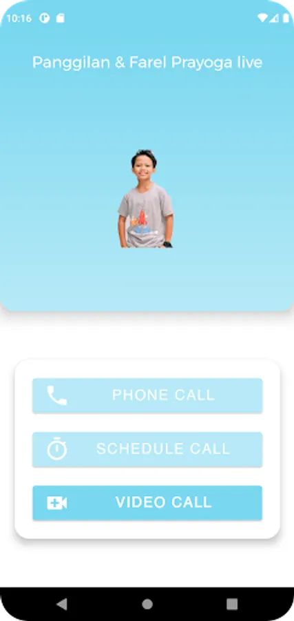 After opening the app you can choose video call or a voice call from your favorite singer Farel Prayoga.