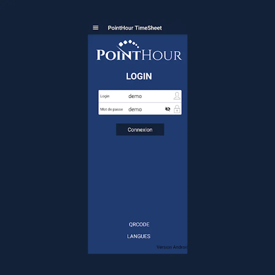 Use the demo/demo account to test. This application works with the PointHour HR solution.