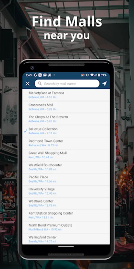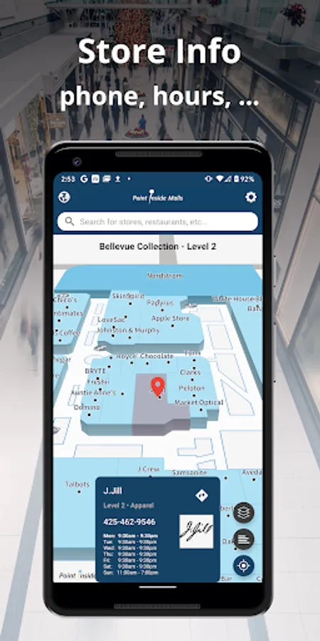 + Locate malls near you by search or proximity to you, and filter them. For example, which malls nearby have an Apple Store?