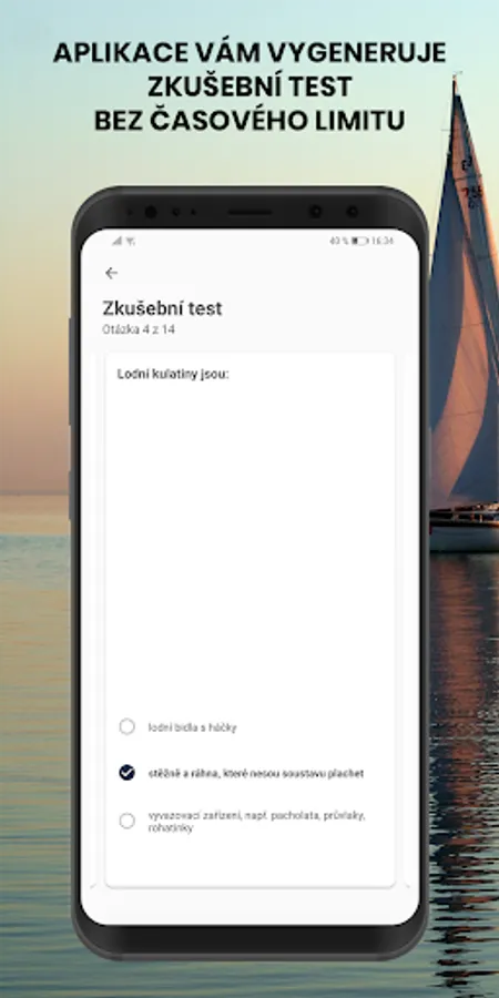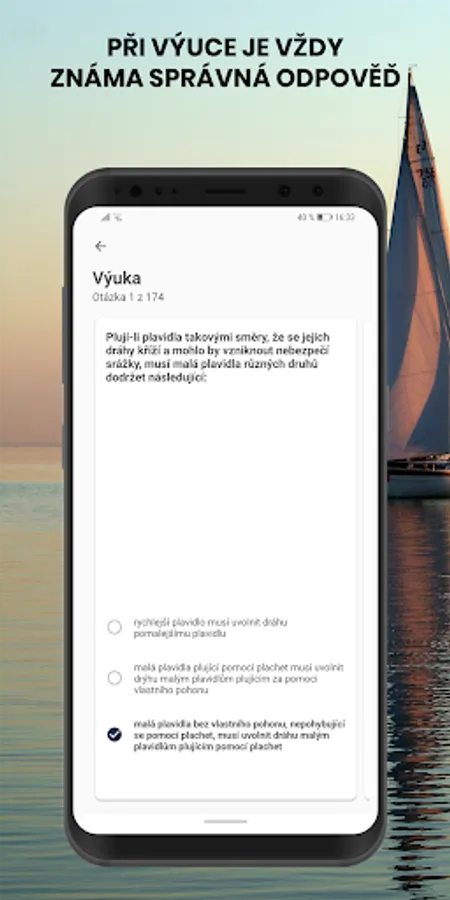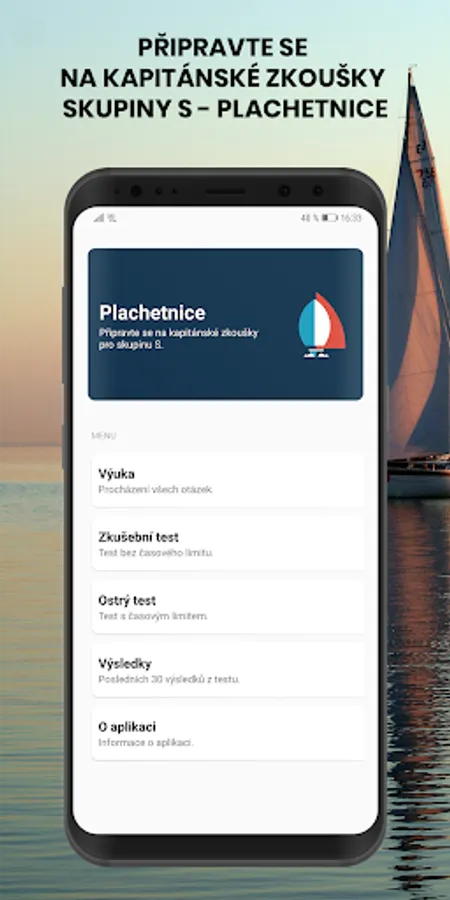 The VMP Sailboat application aims to prepare users for successfully passing the theoretical S-type sailboat test at the Navigation Authority.
