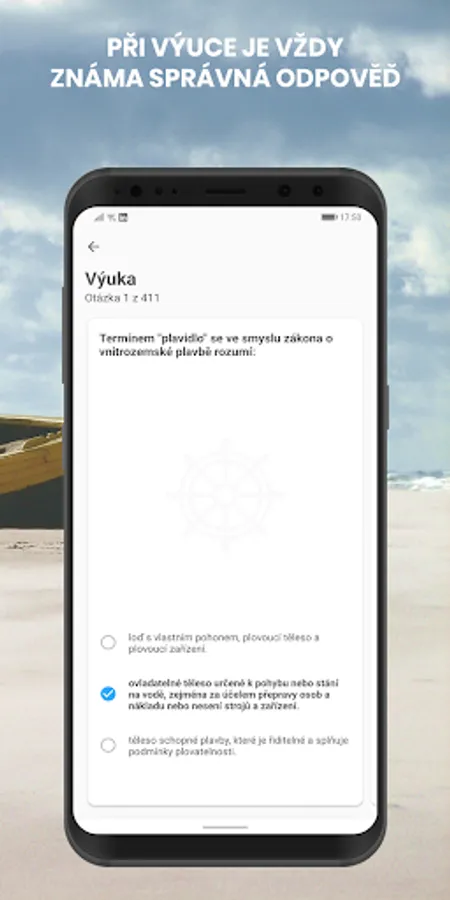 The VMP Inland application aims to prepare users for the successful completion of the theoretical M-type test (authorizes the navigation of a small vessel without its own propulsion machinery and a vessel with its own propulsion propulsion without restriction of the performance of the voyage).