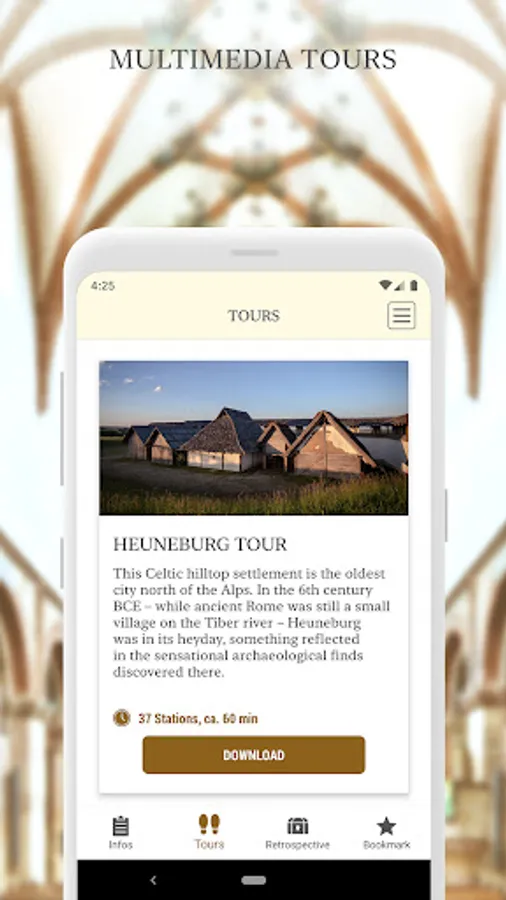 Experience the monuments of the State Palaces and Gardens of Baden-Württemberg with our digital guide: Should it be a uniquely preserved monastery town, the UNESCO World Heritage Maulbronn Monastery? Or the famous palace garden in Schwetzingen and the important Celtic town on the Heuneburg? This app is the ideal companion for your visit. Impressive pictures, videos and audios bring the monuments to life and allow a look behind the scenes. We warmly welcome you!