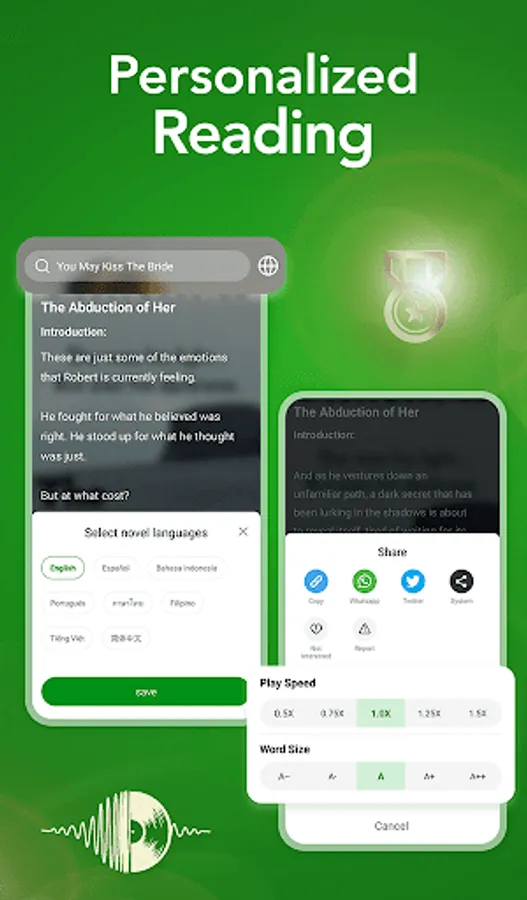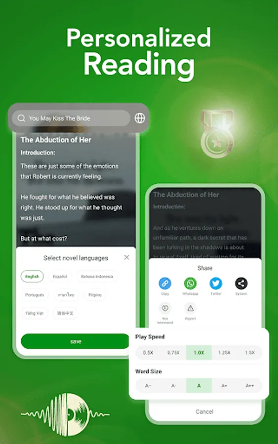 A new reading experience: The book introduction will automatically play instantly only by swiping the screen, . The perfect combination of intelligent matching music and personalized recommendation opens up an immersive book selection experience for you. Support custom adjustment of font size and playback speed to improve your reading quality.