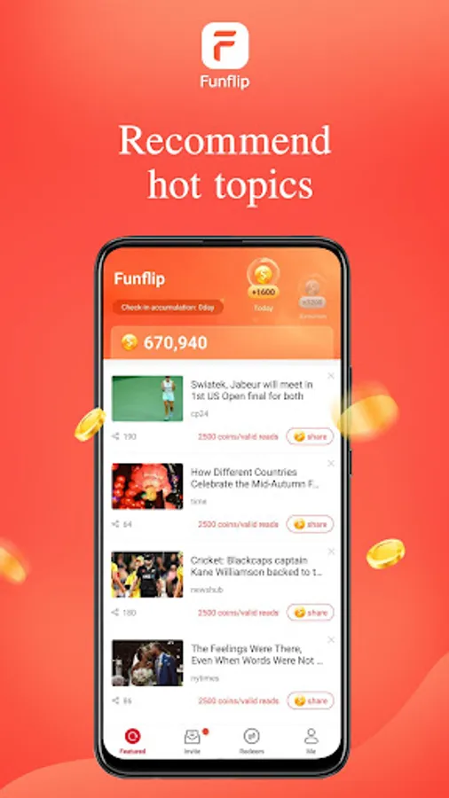 Earn coins by sharing popular topics on Funflip. You can enjoy the fastest localized withdrawal service to withdraw your coins. Support DANA, Bank and Gopay withdrawals.