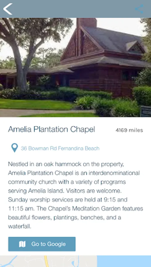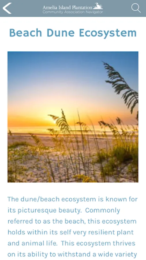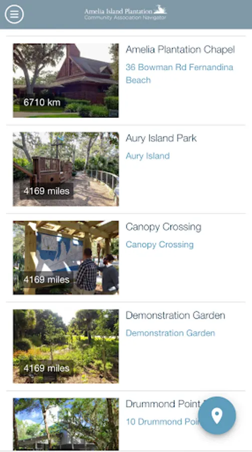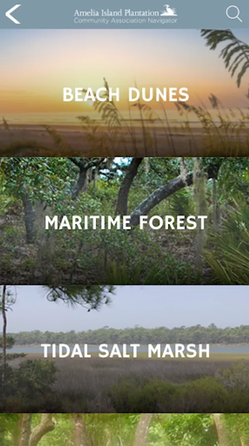 Places of Interest is a list of great places to visit in Amelia Island Plantation. Tap on a POI for a picture, description and an a map to the destination. To return to the main app screen, simply tap the upper left corner.