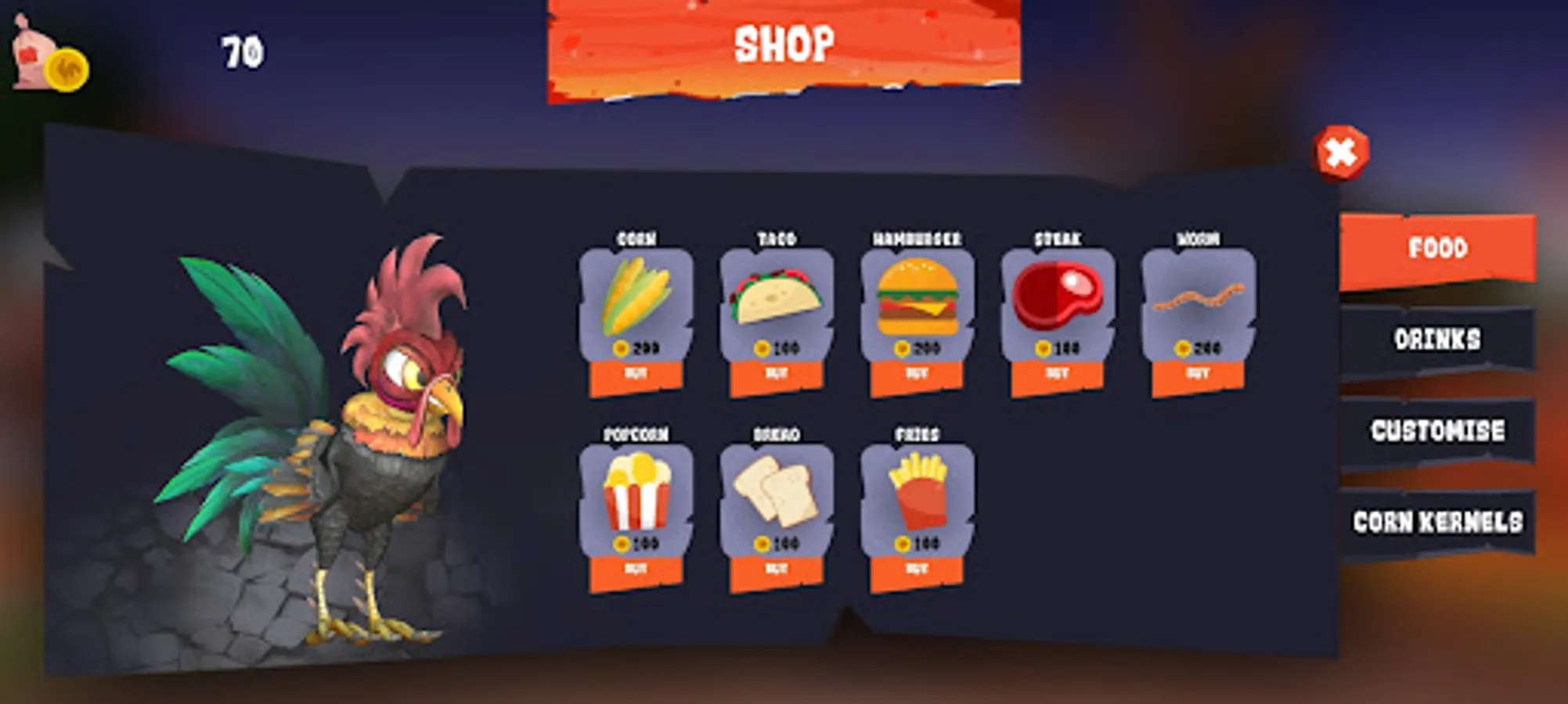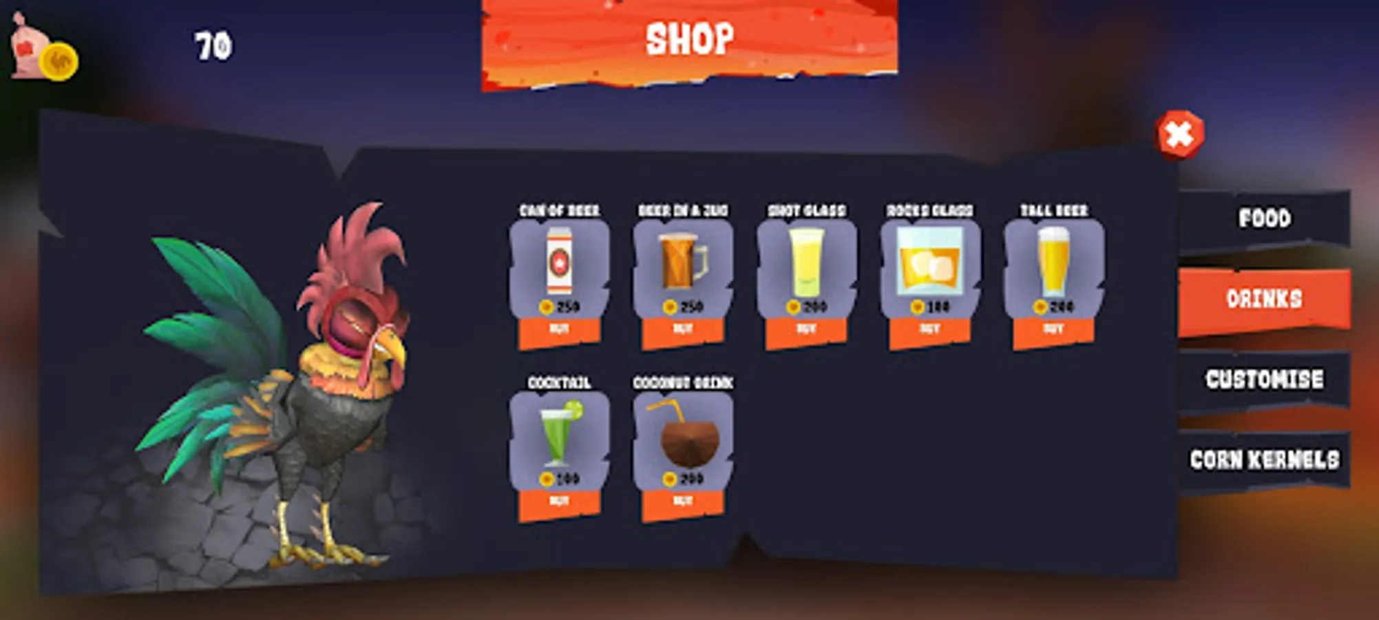 FEED YOUR COCK. Choose from different beverages and meals to make your cock grow. Let your cock enjoy a beer, a cocktail, a few worms or a burger. The more he eats, the bigger he gets.
