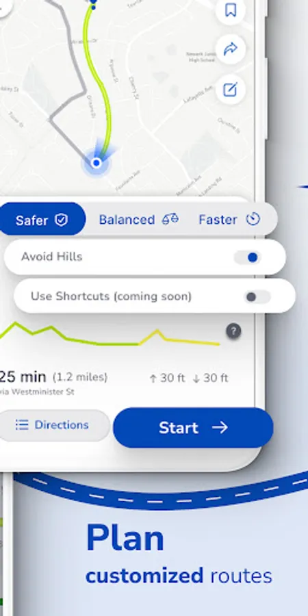 Routes are customizable: Depending on travel needs, riders can choose between a safer, balanced, or faster option. There is also the ability to toggle off hills. Turn-by-turn audio instructions and a smooth, easy-to-understand mapping interface further improve accessibility.
