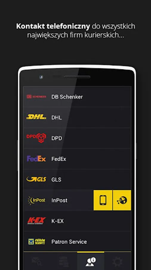 DB Schenker, DHL, DPD, FedEx, GLS, InPost K-EX, Patron Service, the Polish Post, Seven, UPS, TNT, China Post, the Move Pack