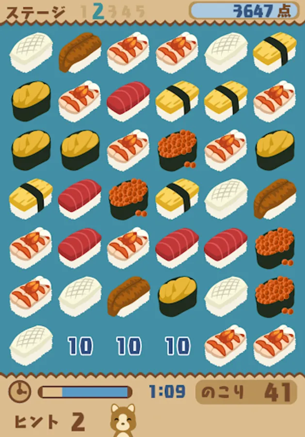 Since lined with colorful sushi on the screen, let's put out side by side three the sushi of the same story by replacing the up, down, left and right of the sushi.