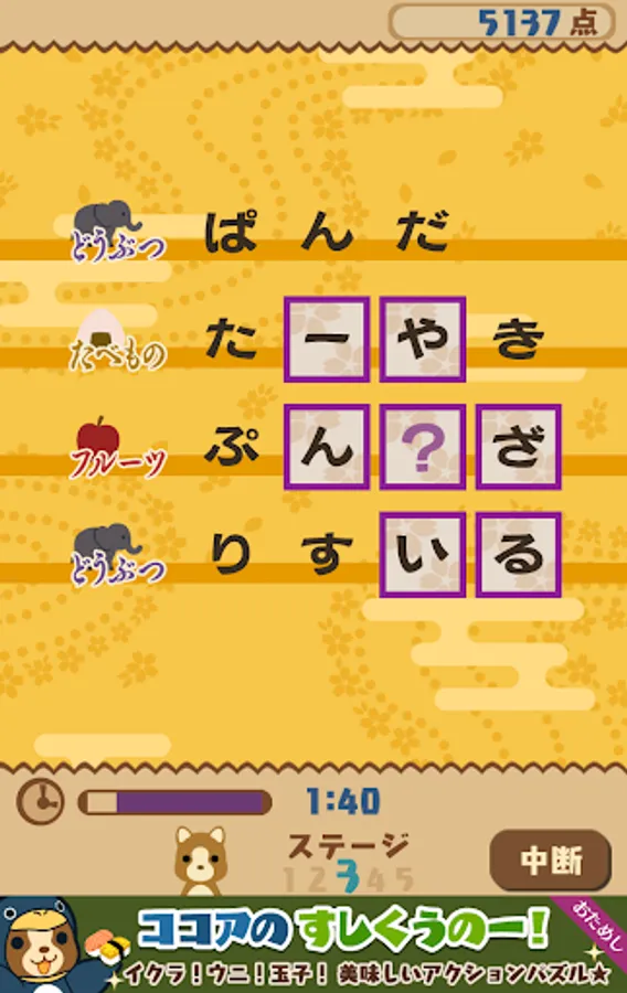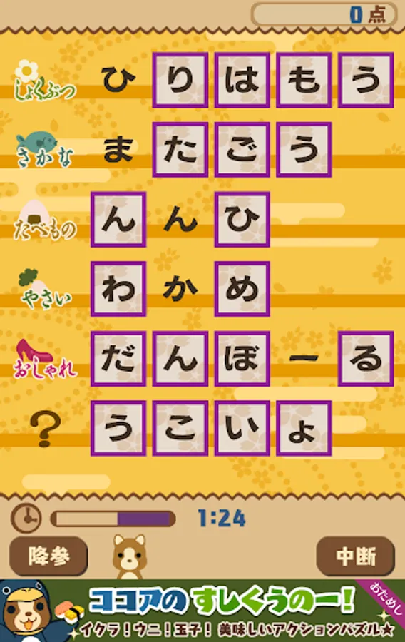 By rearranging the bill of hiragana that has become apart, let's make the right words!