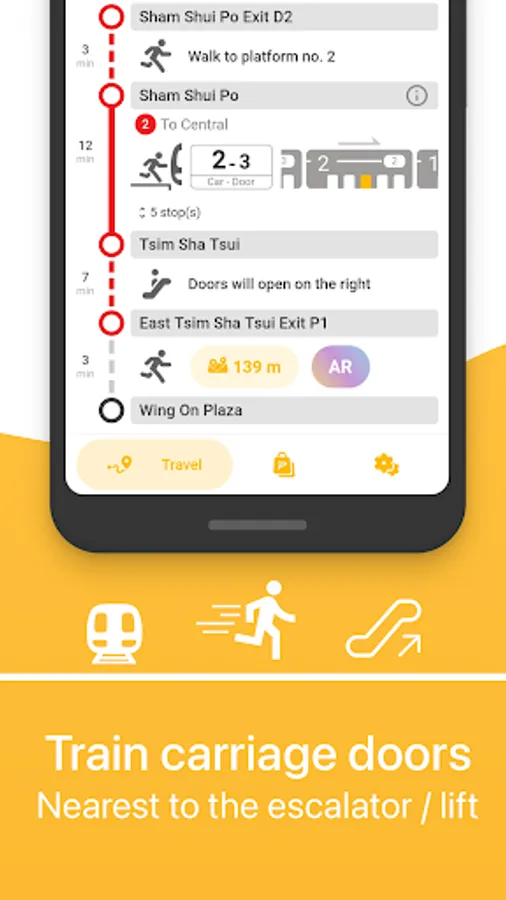 • Recommends the most ideal carriage door to board the train, so that the exit via escalator or lift is right in front of you when you disembark. Transit without hassle, go straight to your destination!