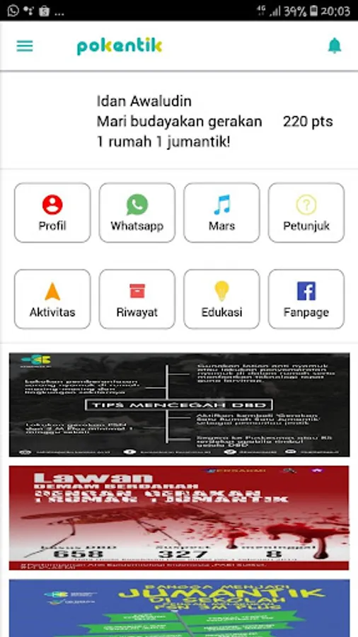 Pokentik is a Smartphone application that is part of the Digital Health Movement or eHealth Movement to contribute to the prevention and control of mosquito vector-based diseases in order to civilize the Jumantik 1 House 1 Movement and Eradicate Mosquito Nest (PSN) 3M Plus.